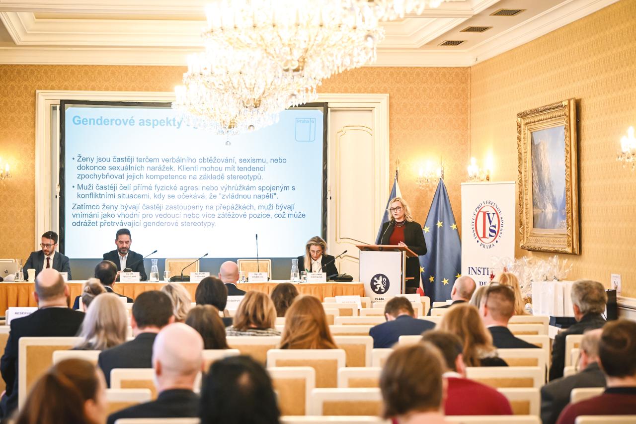 Specialistka lidských zdrojů Úřadu městské části Praha 6 Kateřina Csillagová provedla v loňském roce monitoring vzrůstající agresivity klientů. Jako klíčové „prvoliniové“ pracoviště byl vybrán Odbor sociálních věcí. „Zaměstnanci odboru, z nichž převážnou většinu tvoří ženy, jednoznačně vnímají jinou dynamiku vývoje jednání s klientem, pokud je během jednání přítomna žena, než když s klientem hovoří mužský kolega či je alespoň přítomen,“ vysvětluje Kateřina Csillagová a dodává: „Klienti stereotypně vnímají ženy jako slabší, méně psychicky odolné a snadněji zastrašitelné. Proto předpokládají, že žena se spíš zalekne různých výhrůžek, slovních napadání, sexistických narážek či nátlakových metod. Vzhledem k tomu, že konflikty jsou na tomto oddělení poměrně časté, kolegyně si vypracovaly svou interní metodiku na jednání s problémovým klientem. V praxi to probíhá mimo jiné tak, že při jednání je přítomna další osoba, která sleduje stupeň nebezpečnosti. Komplikované klienty obvykle znají a už předem vědí, kdo je na druhé straně stolu a jakým způsobem může reagovat. Zároveň poznají, když se blíží nějaká ataka, rizikové jednání, které by mohlo dospět až k útoku. Pokud je jednání přítomen kolega muž, klient si tolik nedovolí a v jednání je zdrženlivější.“