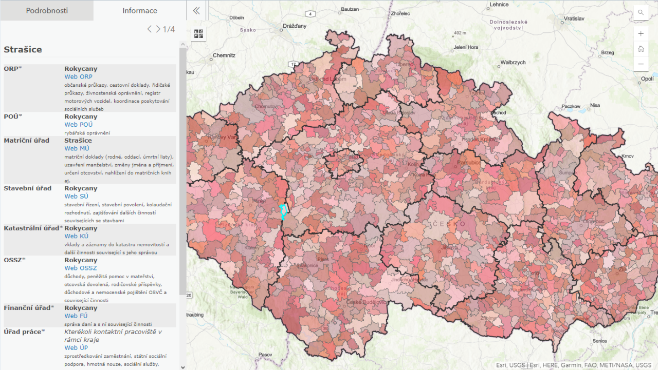 Stěžejní složkou mapového portálu jsou mapové aplikace zaměřené na základní údaje o obyvatelstvu, financování výkonu přenesené působnosti nebo vydávání osobních dokladů. „Další částí portálu je užitečná aplikace s názvem Kam na úřad. Zde občané rychle a přehledně naleznou detailní informace, kde si mohou vyřídit své úřední záležitosti,“ doplňuje Jan Hamáček.